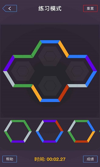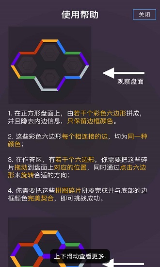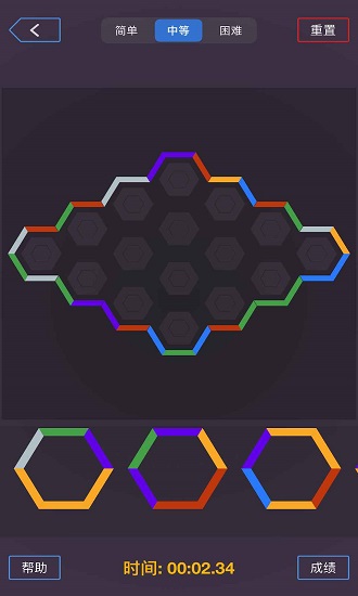 3.在作答区,有若干个六边形,你需要把这些碎片拖动到盘面上对应的位置,同时通过点击六边形来旋转合适的方向;