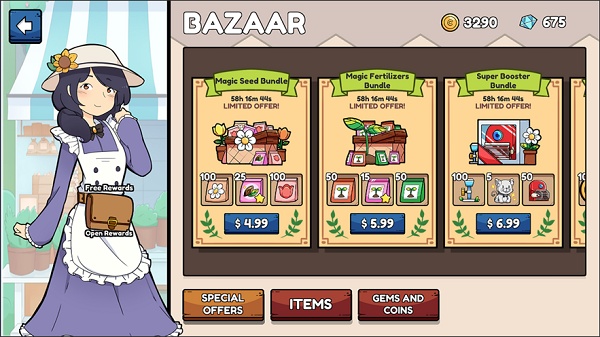 c、简单易于上手的游戏操作,玩家们在这里能够轻松进行游玩,在这里购买各种各样的种子,按照自己的想法打造一个很受欢迎的花园。
