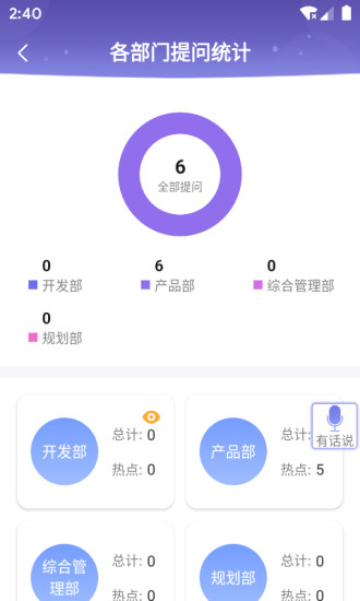 2、能够统计出每一个部门的提问问题数量,及时查看信息。