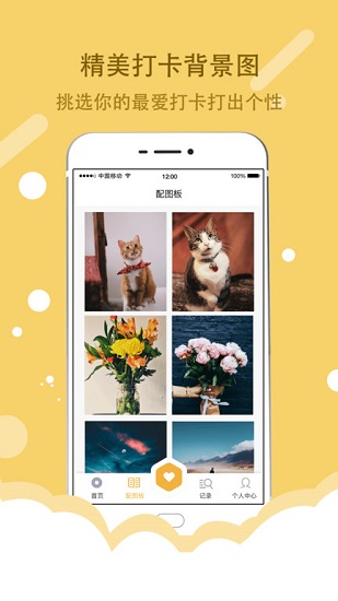 打卡签到,配上自己喜欢的图片,让每一天打卡充满仪式感.也可选择配图板上的图片,简化打卡流程,让打卡更简单