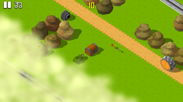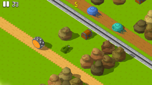 -尽量帮助可爱的青蛙过马路,十字路口,火车轨道和河流,点击屏幕跳转。