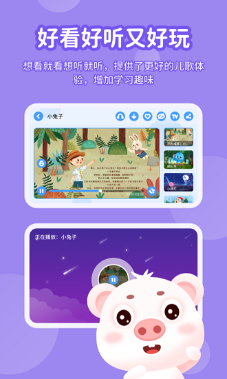 小猪赞赞儿歌致力于打造一款适合小孩子听歌曲的软件,儿歌不仅仅是音乐,往往还有小朋友该学习的知识,用儿歌的方式教给小朋友,让小朋友记得更清楚,也更明白,这款软件里包含了超多歌曲,喜欢的小伙伴快来下载试试吧!