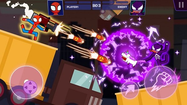 蜘蛛火柴人大战2采用精美的游戏画风加上新颖的动作玩法带来不一样的指尖体验,简单的操作方式不仅有丰富的人物角色等你来选择更有华丽的技能特效满屏爆炸,多种模式选择以及拳拳到肉的打击手感,无限连招上手容易值得一试。喜欢的玩家赶紧来下载体验吧!