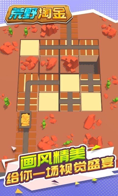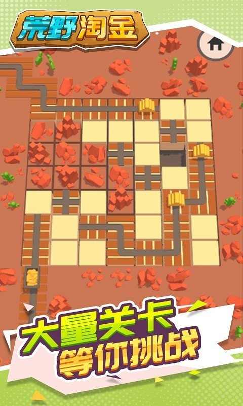 荒野淘金是一款竖屏单人休闲益智类手机游戏。在荒野淘金游戏里面玩家需要移动相关地形的位置,滑动地形就能使地形的位置进行左右的移动,荒野淘金游戏目标就是让金矿小车能顺利的通过这段道路。