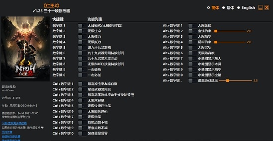 仁王2修改器可以修改游戏中多项功能属性,例如无限生命和无限体力丶无限魂核丶生命回复,仁王2多功能修改器非常的实用和方便需要的玩家朋友们可自行下载。