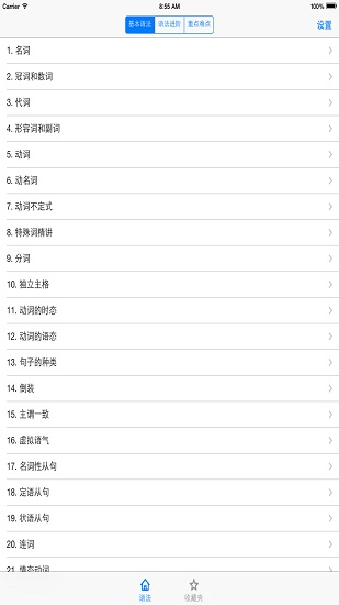 英语语法是针对英语语言的语法进行的研究,指英语中语言的结构规律。此应用详细的分类介绍了英语语法的相关知识。