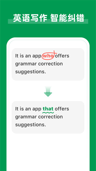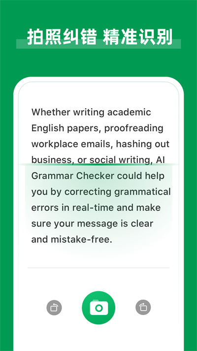 ai grammar英语语法纠错app安卓版可以纠正每一个语法错误,校对速度快,有详细的语法批改和解析,支持进行标注,让你在说英语和写作中都更加的顺畅,减少语法错误,借助先进的图像识别技术,用户能够通过拍照或上传图片的方式,轻松获取语法修正建议,提升他们的写作体验。快来下载体验,让你的英语表达不再有顾虑吧!欢迎有需要的朋友下载使用!