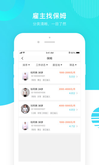 是一款由温州人力资源和社会保障局牵头由温州市职业介绍中心为主题创办的家庭服务市场管理平台。其主要功能为提供市民查找保姆的渠道,查看家政人员基本档案,了解其是否接受培训,是否有犯罪记录,是否身体健康等。并可根据自身实际需求于网上筛选相应保姆并于中介联系达成相关求职服务。主要特点为:系统为每个在市场中从事家政服务的保姆建立独立的个人信息档案,配合市公安、卫计、人社等多部门定期进行人员信息审查,确保家庭服务人员具有相应的进入家庭服务的能力。系统提供有中介公司与用户网上互动平台。用户可通过系统在线与相关从业人员进行交互交流。并提供APP,网页端多平台信息支撑信息交流,实现多渠道的前后台结合的综合管理。