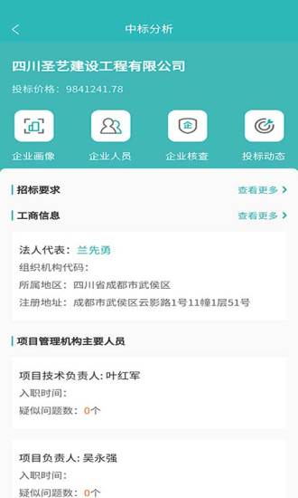 1、互联网大数据精准高效查询,管理对应企业资质人员问题中标情况,线上查询企业信息;