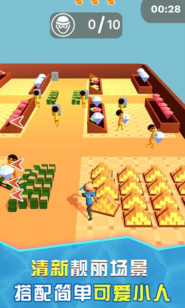 小贼休走游戏非常的休闲的闯关游戏,简答的画风橡皮人角色打造的非常的丰富,3d的视角带给玩家的指尖的竞技的热血快感,超炫特写给你飞檐走壁感受热血的抓小偷带给你英雄奇幻之旅,感兴趣的玩家可以来下载试试!