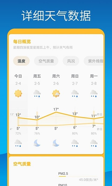 提供查看PM2.5,空气质量指数界面升级,五天之内逐小时预报