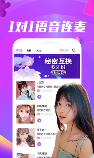 陌陌聊天:来美聊探探双方默契值缘分值,相比视频聊天,语音聊天保留一定的私密性,安全结交共同兴趣的朋友,扩大交际圈,不再默默一个人。