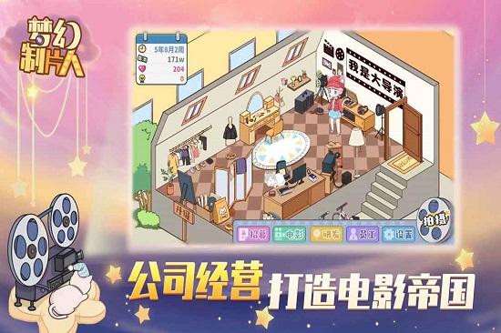 梦幻制片人最新版是一款模拟拍电影的手游,在这款手游里可以招募自己的演员,拍摄出好看的电影就能得到很多金币,用来升级自己的团队和设备,让自己变成一个国际导演,走向人生巅峰,感兴趣的小伙伴快来下载体验吧!