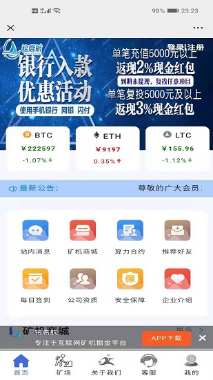 2.铭启航APP拥有专业运维团队及大型超算中心,基于平台自身的超算中心设备提供挖矿算力产品、矿机托管及买卖交易等服务。