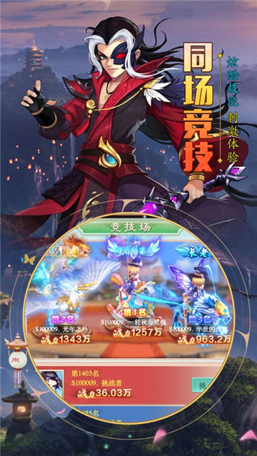5、独特的仙魔战场即将开启,提升角色的战斗经验,增加角色的挑战实力,称霸九州畅游修仙幻境。