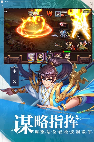 大家熟知的三国武将并且尝试进行策略的组合与战斗。