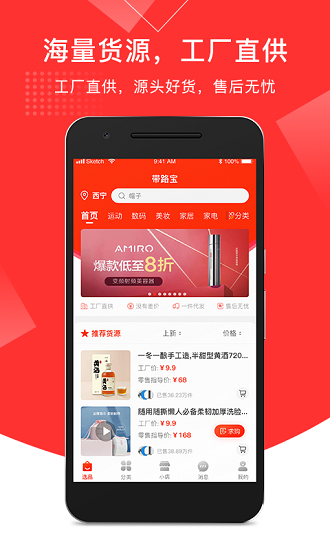 带路宝app是一款工厂源头直发的软件,在这里购买,直接从工厂发货,折扣更高,商品经过层层保证,质量有保障,而且一件也是出厂价,只要你拥有这款软件,就能拥有最便宜的购买渠道,而且还有优惠券可以领取,感兴趣的小伙伴快来下载体验吧!
