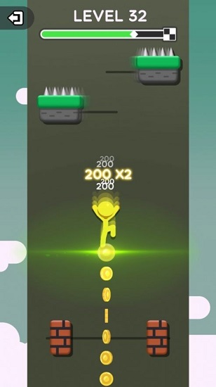 4、在空中可以收集到许多亮闪闪的金币,但同时也暗藏着无数危险。砖块、电锯、地刺,甚至电线等。