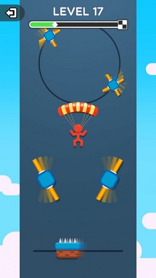 极限大玩家需要自己控制好距离来跳伞,跳伞的时机取决于自己,什么时候开伞是决定游戏是否胜利的关键点,要时刻小心那些障碍物,只要被碰到就会一命呜呼哦,游戏的难度并不算难,但是需要玩家随机应变,喜欢的小伙伴快来下载体验吧!