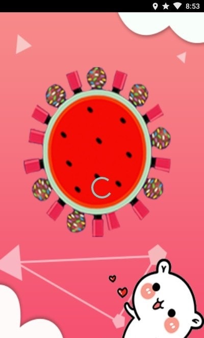 c、将口红射入旋转的圆盘上,全部口红成功射入圆盘即可过关!关卡难度会越来越高哦,你准备好迎接挑战了吗?