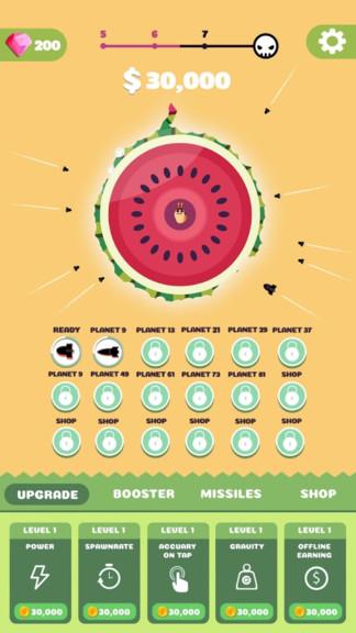 当你的炸弹摧毁一部分行星水果时,你就会有钱。你制造的破坏越多,你赚的钱就越多。你可以用这笔钱来升级炸弹的许多功能。你摧毁的行星水果越高,你解锁的炸弹就越多。此外,当你使用助推器时,你可以在短时间内获得更多的钱。