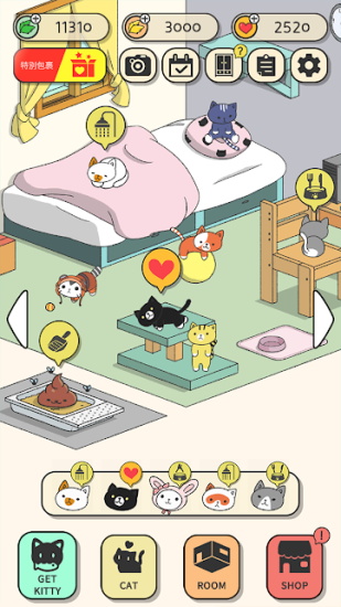 1、从《获得猫咪》模式中获得的猫咪可以被护送到猫咪房。