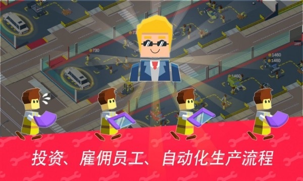 放置造车厂正式上线了,游戏中你将成为一家造车厂的经理,你需要雇佣员工来为你的工厂工作,将车辆的零件组装起来变成一辆完美的小车,并通过经销商将小车贩卖出去。不断升级造车厂需要的设施,积攒更多的金钱,成为一代造车大亨吧!