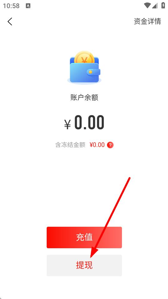 3、进入资金详情页面后,点击提现按钮。