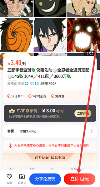 4、账号详情页面点击“立即租玩”,完成租号操作。