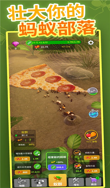 收集食物,发展你的蚂蚁部落,并赢得胜利。