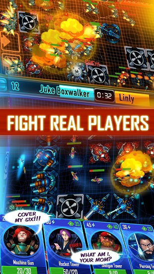塔防决斗是一款多人联机的PVP塔防手游,玩家在游戏中进行实时多人对战匹配完成游戏,游戏拥有精致的画面制作,效果华丽的轰炸系统,玩家与玩家之间进行刺激紧张的PVP对战,多种不同种类的武器造就了不多不同的对战方法。