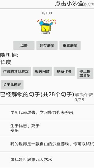 1、点击来增加进度,然后进度满100 会获得一句我写入的文本;