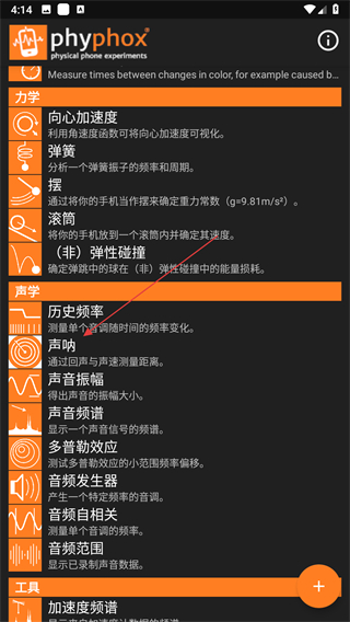 phyphox是一款非常方便且实用的传感器软件,不仅具有丰富的功能更有直观的数据展示图以及各种分析等等,其中包括力学,声学声呐等等,便捷的操作方式加上各种实验测试更有专业的传感器数据等等,软件功能多多使用方便让你在不同的场合中使用,需要的朋友赶紧来下载吧。