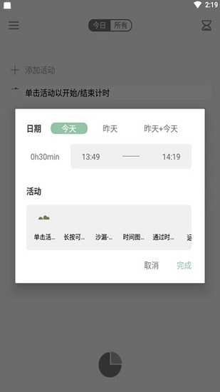 这是一款记录在生活中各项活动上时间花费的应用,愿景是帮助你建立起时间流逝的意识感,通过数字量化的方式帮助你更好地评估,调整自己的生活。