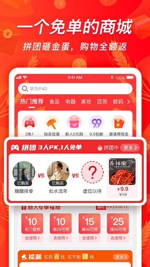 1.一个免单的商城,拼团砸金蛋,购物全额返