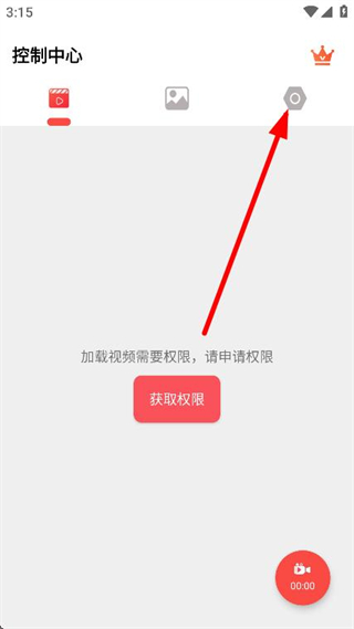 1、打开屏幕录像软件,点击页面右上角的设置图标。