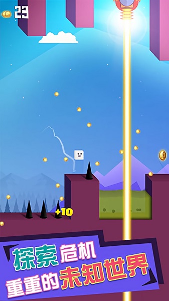 跳跃冒险,超休闲闯关手游作品,游戏中玩家将操控一个小方块踏上一条充满凶险的闯关冒险旅途,闯关玩法接近经典的马里奥游戏,玩家需要操控小方块通过跳跃前进的方式避免地上的陷阱,准确的到达安全的彼岸,感兴趣的玩家可以下载体验!