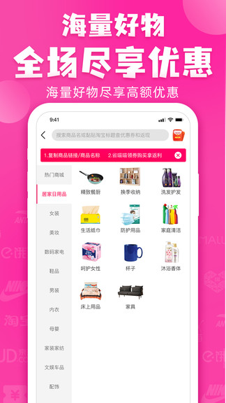 每天精选近万件优质产品福利推送,让用户在购物的时候,能够领取优惠券使用;