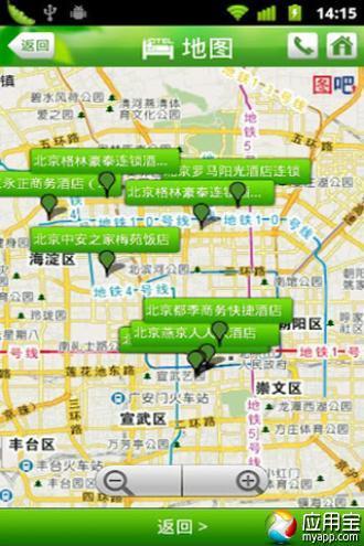 4.最强大定位功能:周边酒店查询,利用卫星定位,让您找到身边10公里内的酒店;
