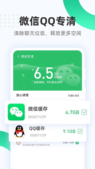 2、快速清理垃圾文件,减少手机内存占用,聊天更加畅快。