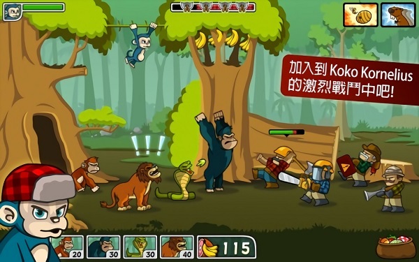《猴子防御战》是一款有创意的策略塔防游戏,游戏森林防御战手游下载不单有益智的作用,玩家可以在森林防御战猴子传奇中文森林防御战免费下载中任意购买武器和道具哦,还积极传达保护环境的意识。在森林防御战:猴子传奇戏中,玩家将要控制一只机灵的猴子,带领它的“小伙伴们”完成一场场家园保卫战。