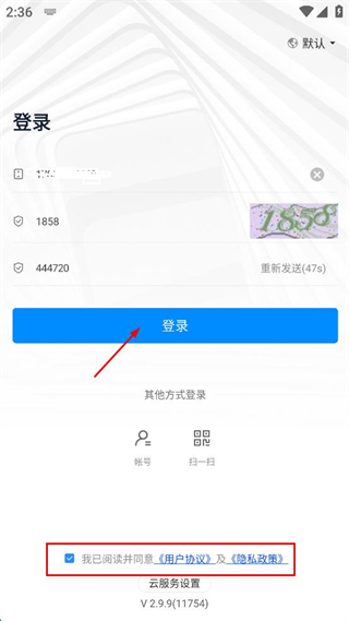 4、勾选我已阅读并同意用户协议及隐私政策,点击登录按钮。