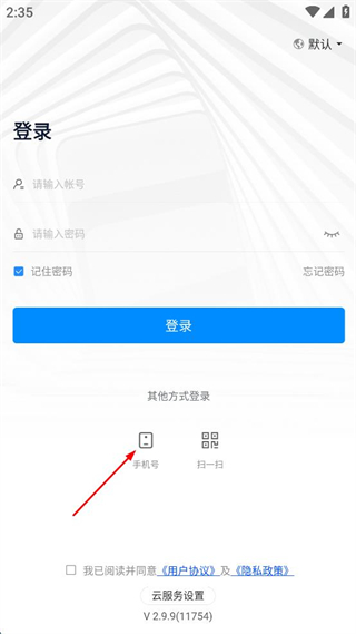 2、在登录界面点击手机号登录选项。
