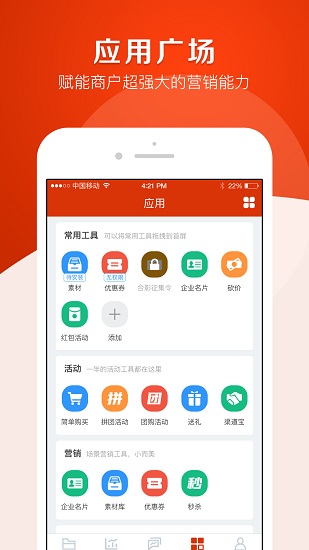 3、拥有超多营销应用,让商户便捷进行营销推广,并且所有应用免费使用;