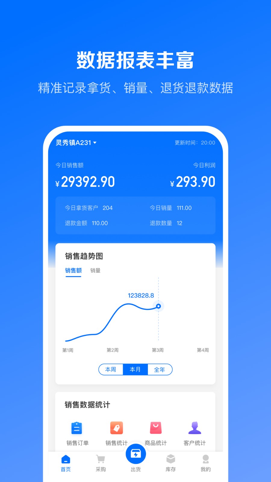 1、功能强大的利润统计功能,可以查看每天的详细利润和指定某件商品的销售利润。