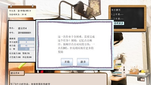 这里的体验也是十分的真实,玩家们可以感受到紧张的学习氛围,还有刺激的考试,小心你的成绩,每次考试不及格,是会被学习退学的,所以你要好好学习才行。