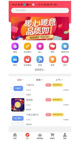2、同城店铺坐镇,酒店、休闲娱乐、丽人和婚庆、教育培训、运动健身等店铺都能找到;