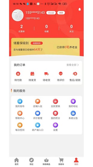 4、购物立即返现,用户在储蓄保app购物付款之后消费金额能够快速转换为养老金。