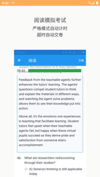 严格模拟考试:禁止长按查词,有时间限制,超时自动交卷。