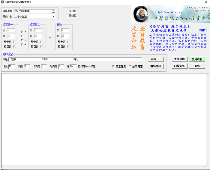 6、运算题型:可以自己定义,也可以选择预先定义的题型,对于预先定义的题型可以进行修改,不会影响软件。